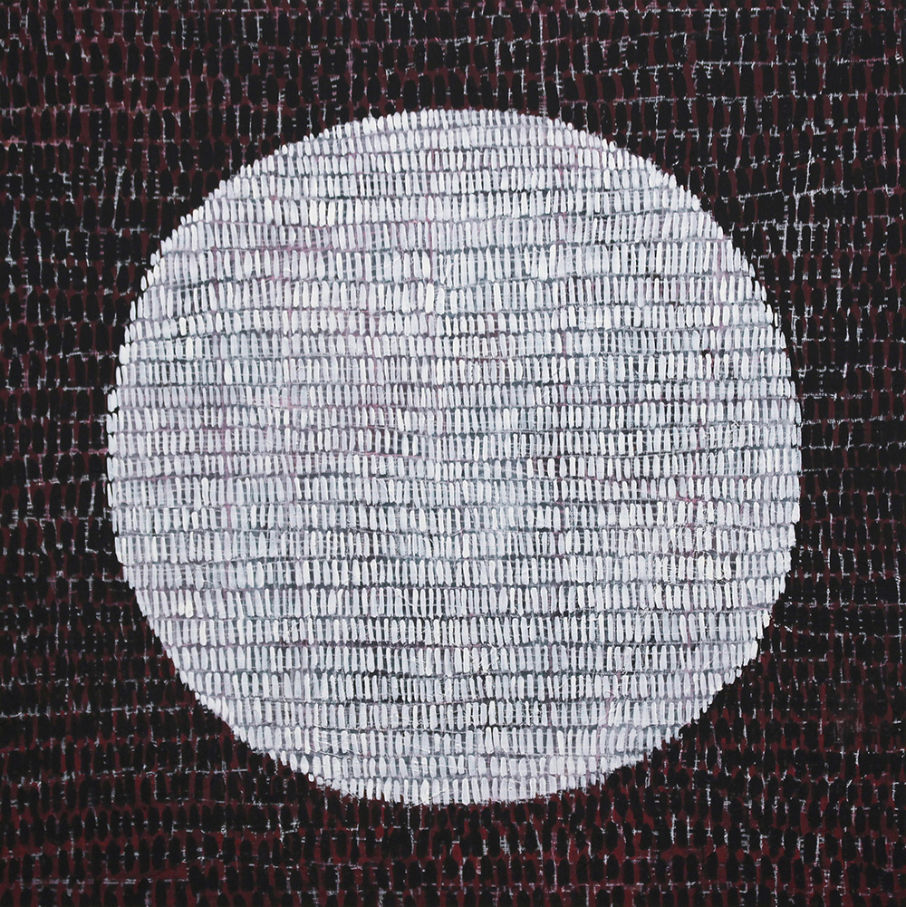 Caelli Jo Brooker’s new work examines cycles and processes of making, and the ebb and flow of creative profession and practice. In these works, the mark operates as a more formal creative strategy set apart from its usual role as an expressive and idiosyncratic signature. The mark is meditative and repeated, functioning deliberately as a generative mechanism for realising an image, and aligned with the designed form more than the rehearsed, or spontaneous gesture. The recurring moon motif in the work represents the ever-present, but shifting pull of the ideas that attract us and the making that compels us.